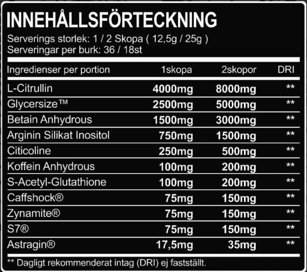 - Aktiv muskelstimulering - Full formel av pre-workout - Ikke noe sukker! - Sterk smak! Ikke søt i det hele tatt!