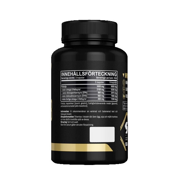 Skytrition Omega-3 70% Omega-3 av høyeste kvalitet med en av de høyeste dosene av EPA/DHA på markedet takket være 70 % råmateriale NOK229,00 inkl. mva. Utsolgt Ønskeliste Del dette Produktinfo Produsent Innhold Brukanvisning Produktanmeldelser (0) Omega-3 av høyeste kvalitet med en av de høyeste dosene av EPA/DHA på markedet takket være 70 % råmateriale. Du kan forvente: Redusert betennelse Optimalisert kardiovaskulær helse Forbedret hjernefunksjon Økt restitusjon SKYTRITION Hos Skytrition er vi stolte av å være en pioner innen kosttilskudd i Sverige. Vi ønsker å endre måten folk ser på helse og velvære ved å tilby produkter som er både unike og banebrytende. Produktene våre er et resultat av et tett samarbeid med verdensledende eksperter og forskere innen ernæring og helse. Ved hjelp av patenterte og varemerkebeskyttede ingredienser kan vi tilby noe som aldri før har vært tilgjengelig på det svenske markedet. Fokuset vårt er ikke bare på å levere resultater, men også på å skape produkter som er trygge, effektive og bærekraftige. Vi tror på kraften i vitenskap og innovasjon. Derfor er hvert produkt basert på den nyeste forskningen, og vi streber alltid etter å være ett skritt foran. Kosttilskuddene våre er utviklet for å passe inn i en moderne livsstil og gi deg den støtten du trenger for å føle deg sterk, sunn og balansert. Enten du har spesifikke mål eller ønsker å forbedre ditt generelle velvære, kan du stole på at produktene våre er blant de beste og mest innovative på markedet. Skytrition – Der vitenskap møter innovasjon. Innhold : 3 kapsler 9 kapsler Fiskolja 3000mg 9000mg herav omega 3 2100mg 6300mg herav EPA 990mg 2970mg herav DHA 660mg 1980mg herav ovrig omega 3-fettsyror 450mg 1350mg Antall doser per pakke: 30 stk.Anbefalt daglig dose: Ta 3 kapsler med 3-5 dl vann eller en hvilken som helst drikk etter eget valg.Oppbevaring: Oppbevares utilgjengelig for barn i tett lukket originalemballasje.Tilleggsinformasjon: Dette er et kosttilskudd og bør ikke brukes som et alternativ til et variert kosthold. Anbefalt daglig dose bør ikke overskrides. Oppbevares utilgjengelig for små barn. Husk viktigheten av et variert og balansert kosthold og en sunn livsstil. Produktet er beregnet på friske personer over 18 år. Hvis du er gravid, ammer, lider av en sykdom eller behandles med medisiner, bør du konsultere lege før du bruker produktet. Skriv en produktanmeldelse og del dine erfaringer med dette produktet med andre kunder. Email Navn Din vurdering? 1 star 2 star 3 star 4 star 5 star 6 star Oppgi en tittel for anmeldelsen din Skriv inn produktanmeldelsen i feltet under